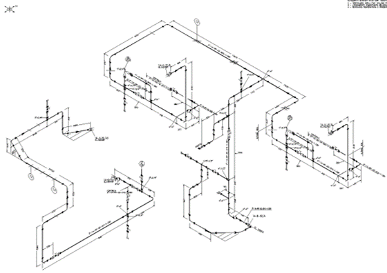 Detalhamento em 3D dos circuitos de inspeção para o time de inspetores e examinadores realizarem o monitoramento das condições dos sistemas de tubulação, conforme a norma técnica de Inspeção API 570.