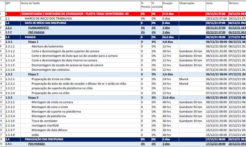 Planejamento de Rotina e Parada geral de manutenção na unidade de Rio Grande/RS